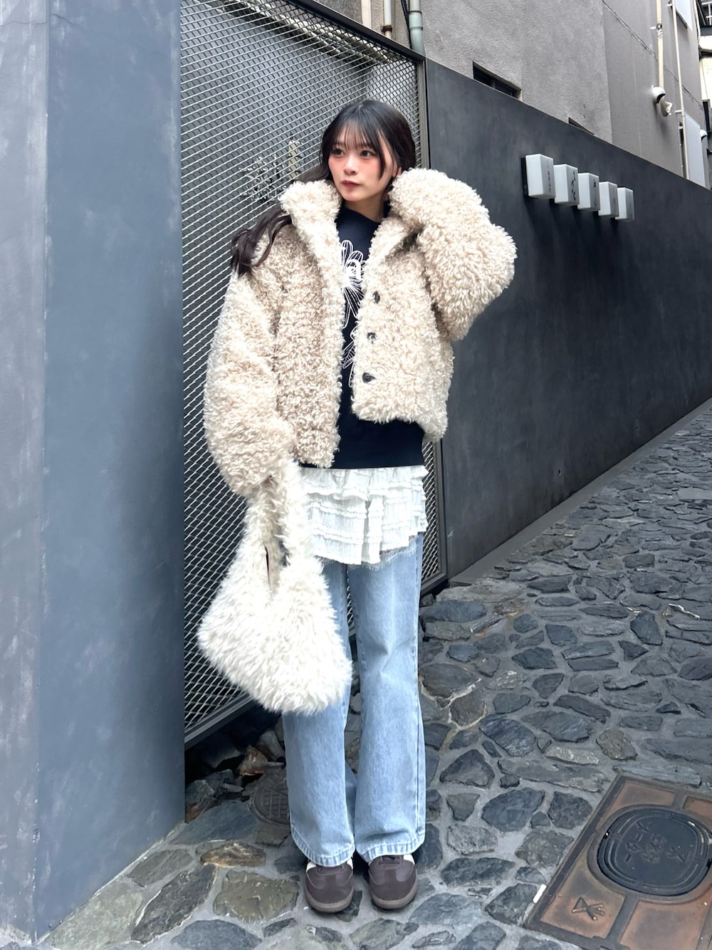 スウェットと白スカートとデニムのレイヤードが好きすぎる