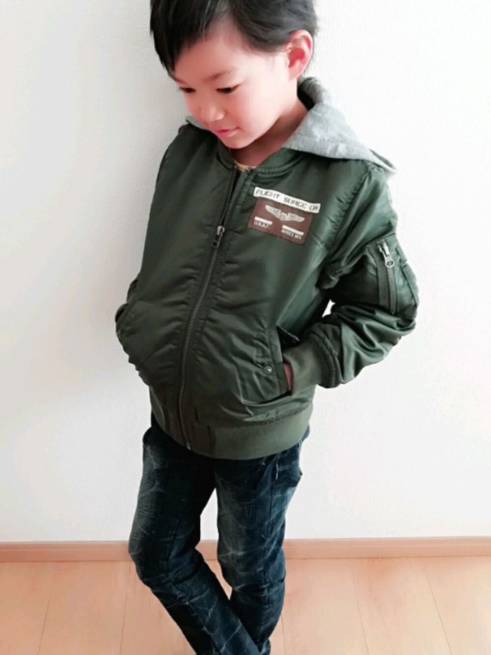 Cake《相互フォロー100》のMA-1「AVIREX/アビレックス フード付きMA-1 ボーイズ(80cm~140cm)」を使ったコーディネート