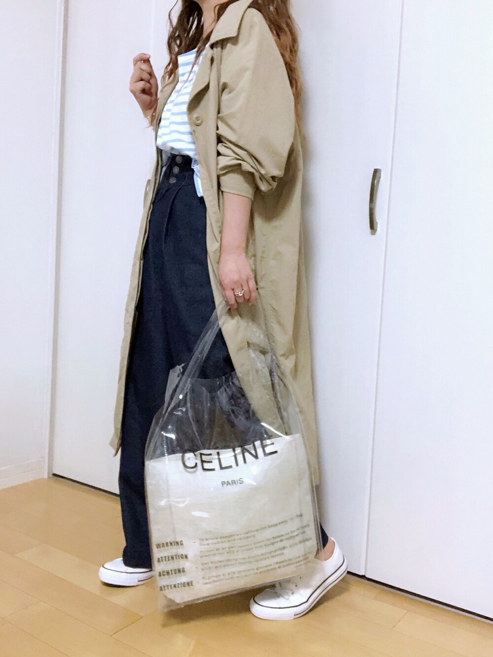 ベージュに水色を合わせたくて ライトブルーボーダーをポチっとしました♡ サスペンダー付きワイドデニムは サスペを取り外して使ったよ♪♪ クリアバッグはグリーンのポーチが付いてたけど 麻のバッグ入れてからの、その中に入ってますw ちなみに麻バッグはseriaのww サイズがバチーンと合った✨