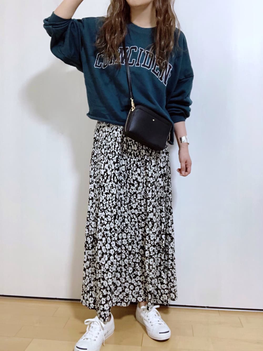 久々上下しまむら♡♡ 花柄プリーツスカートが ロングでめっちゃ良かった💖 丈で決めたから履いてるのはLなんやけど 商品説明の品番は Lは番号が違ったので追記しときます! 追記 : L品番 522-0543