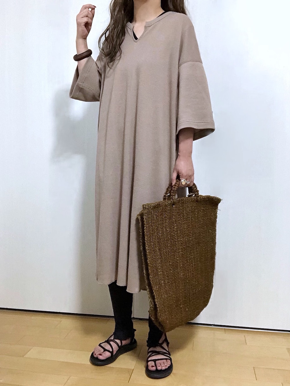 GUのキーネックTワンピース💕 こないだの限定価格の時にGET! 1枚ではまだ涼しすぎるかなーと ZOZOのTシャツをレイヤードしました これも前回と同じく大きめで 胸囲119 肩幅46 着丈69 になるように作ってもらいました♪♪ 肩幅はもうちょっと広い方が より好みになったかなーって感じです お手持ちのお気に入りのサイズを測って 作ってもらっても良いかと✨ キーネックTワンピース(着用XL)