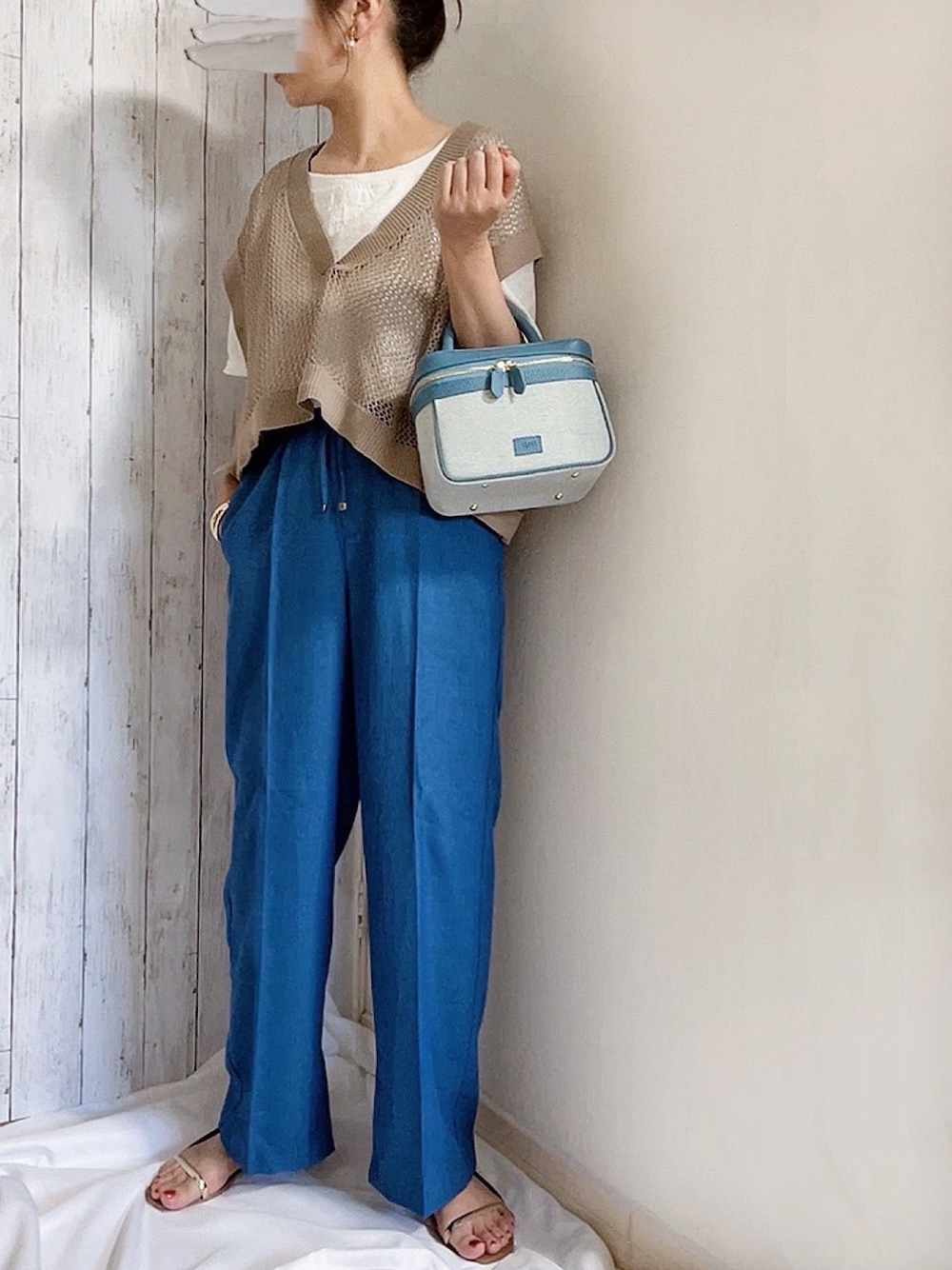 メッシュベストにカラーパンツ💖 小物をきれいめにして きれいめカジュアル! パンツ センタープレスで裾の内側にスリットあり! 今日は蒸し蒸しと暑い日だったけど 薄手でサラサラなので 涼しく過ごせました💕✨ 紐の先に金の金具がついてるので 楽チンなのにカジュアルすぎずで良いです‼️ リネンライクイージーパンツとゆう名前なので リネンタグをつけさせてください! メッシュベストは 去年のワンピースとかにでも サクッと羽織ったりしたら 今年っぽくなると思います😊 40%off中✨ バッグは 見た目以上に沢山入りますよ‼︎(♡ϋ)ノ