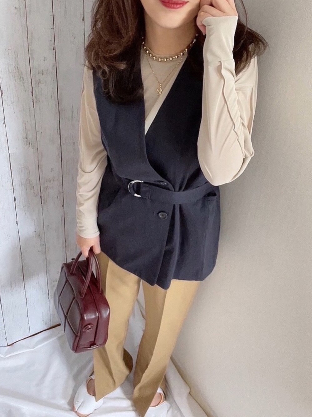 めるものネックレス「イニシャルネックレス」を使ったコーディネート