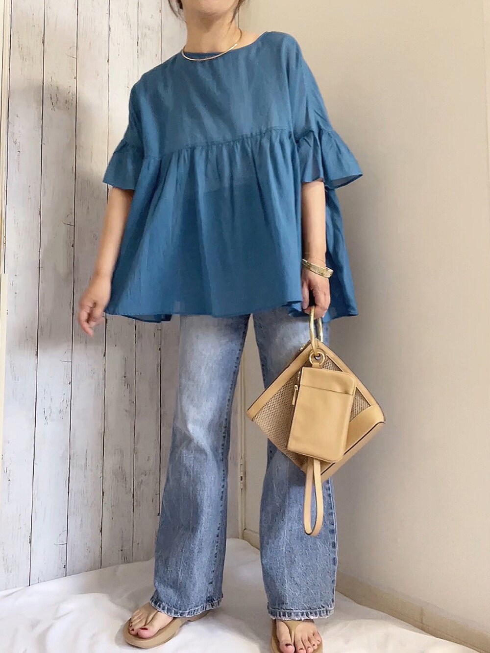 めるものシャツ/ブラウス「レーヨンコットンボイルボリュームギャザープルオーバー」を使ったコーディネート