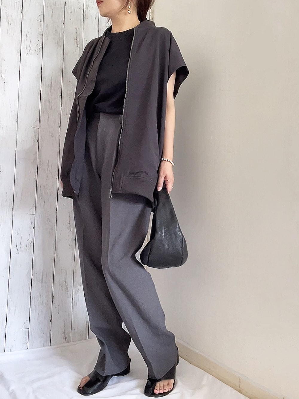 白なしモノトーン❤︎ 私の地域はまだまだ暑いので 実際着るのは先だけど めっちゃ好きだったので なくなる前に新作の ma1ベストをポチっとしました✨ ZOZOで再販中❣️(なので急いでコーデw) 公式shopではどちらのカラーも売り切れているので 欲しい方は早めに買った方がよいかもです! かなりオススメ‼️ オーバーサイズだけど着膨れない生地で 可愛いですー💕 スミクロカラー♪♪ Mでもたっぷりサイズ!! 中を変えれば長く着られそうです😊