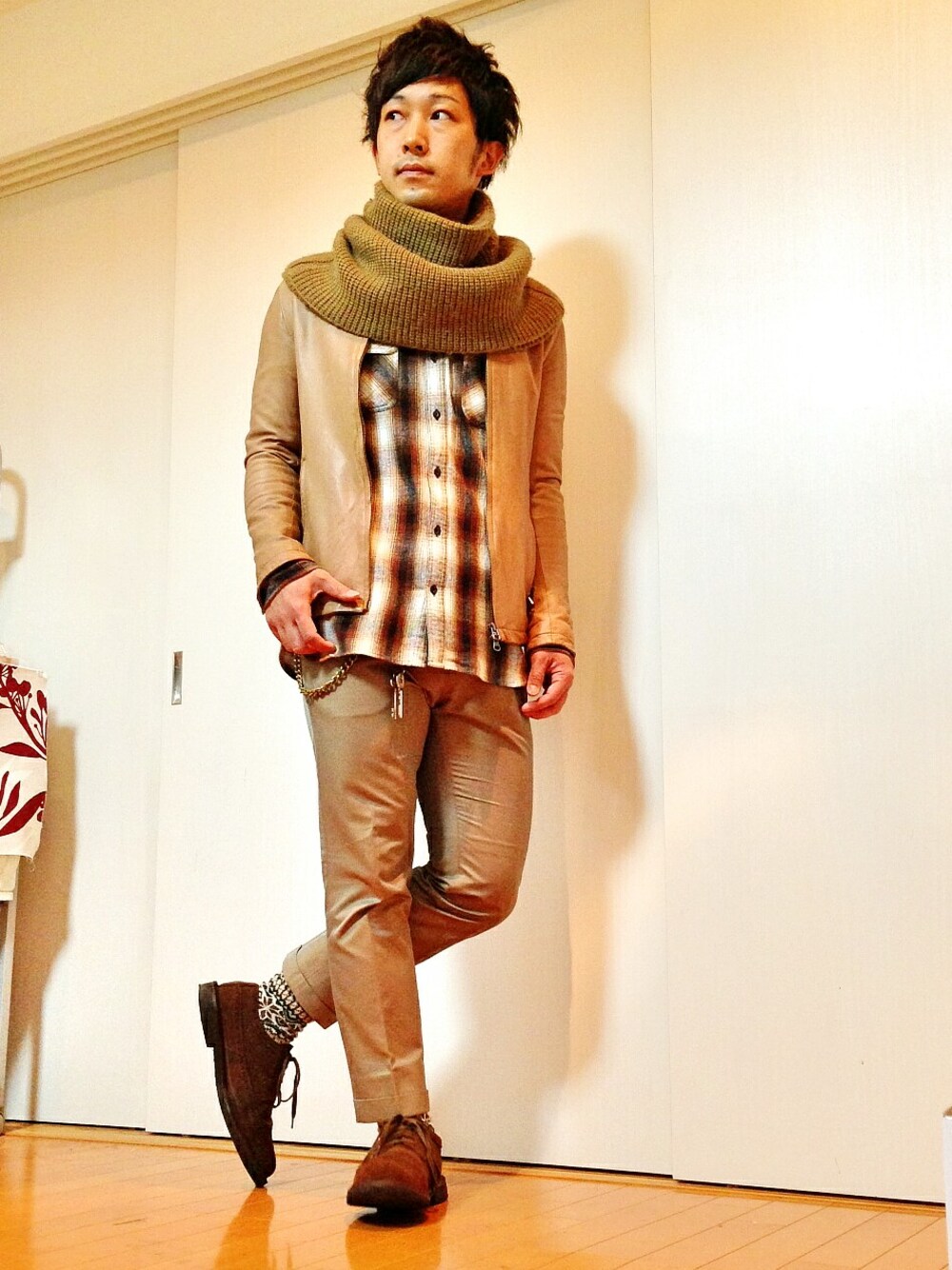 こんばんは◎ 初売り後の禁欲生活中、向後です。 服みたい 服ほしい 服かいたい 服きたい… なっておりますが、お金は無限ではありませんからね。 私服着れるのは土日だけですからね。 がまんがまん。 さて、今日は【ワントーンコーデ】なるものに挑戦。 僕みたいに チビで足太くて天パなヤツは、 全身真っ黒にしても、全身真っ白にしてもスタイル的にイタいことになりますから(笑)、 ベージュのワントーンです。 これであればチビでも、 ほんわか可愛い感じに仕上がります← STUDIOUSのキャメルレザーに、 LADMUSICIANの大判スヌードをオン。 もうほんっとあったかry… 足元もGalaabenD×UNITEDARROWSで、 品よくまとめました◎ 色づかいの制約がある中では、 すごくいいコーデに仕上がった気がしてます←自画自賛 ワントーンコーデのポイントとしては ・素材感の差をつけること ・色をグラデにすること ・随所に柄を挿すこと あたりですかね。 これなら外着ていけるな( ´∀`)σ)∀`) そんなワントーンコーデ、いかがでしょうか^^ それでは◎
