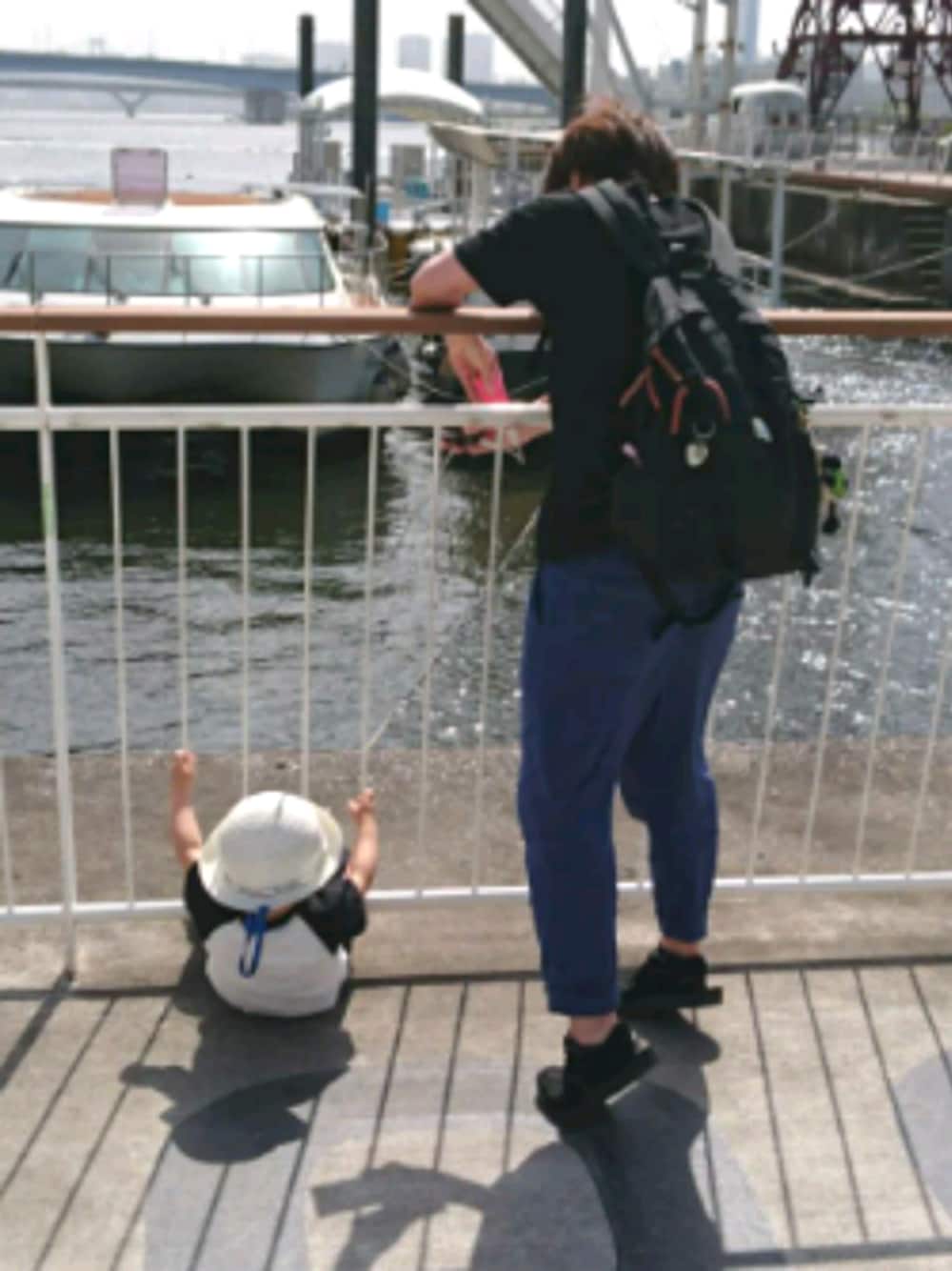 少し前のコーデですが(GW位かな⁉)。。 豊洲のららぽーとの船着き場にて。 めっちゃ簡単なコーデが動きやすかったりする~✌