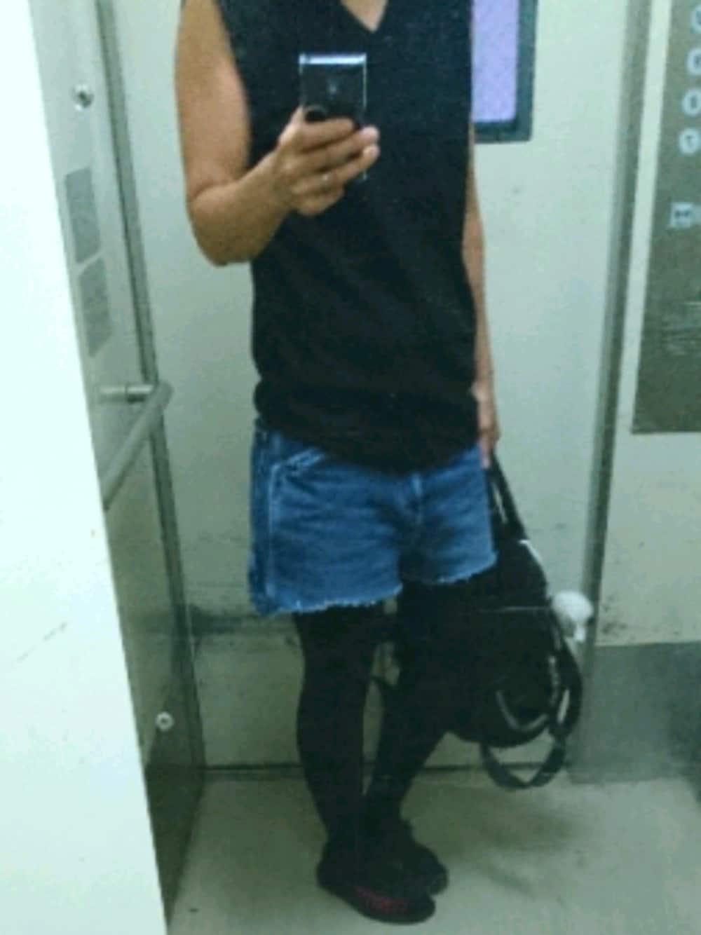 GUメンズのデニムを切りっぱなしにして、涼感トレンカはいて、、、、、おしゃれと言うよりはとことん動きやすい格好です最近は。。。 息子もやっと手繋いで歩いてくれるようになったので、涼しくて安くて簡単な格好してます