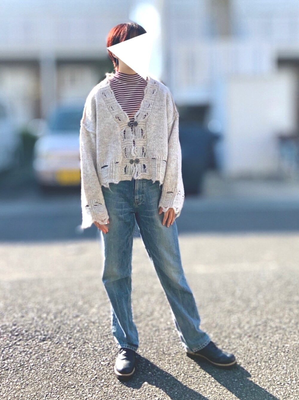 みんのカーディガン/ボレロ「リサイクルヤーンクロップドカーディガン」を使ったコーディネート
