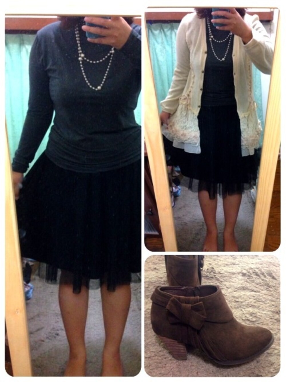 夜のお散歩へいこうかな。 インナーはシンプルに。 パールネックレスでフェミニンぽく。 最終的にはaxesのカーデでガーリーに。 ブーティはお気に入りのmaRemaReで。 いってきます*+.