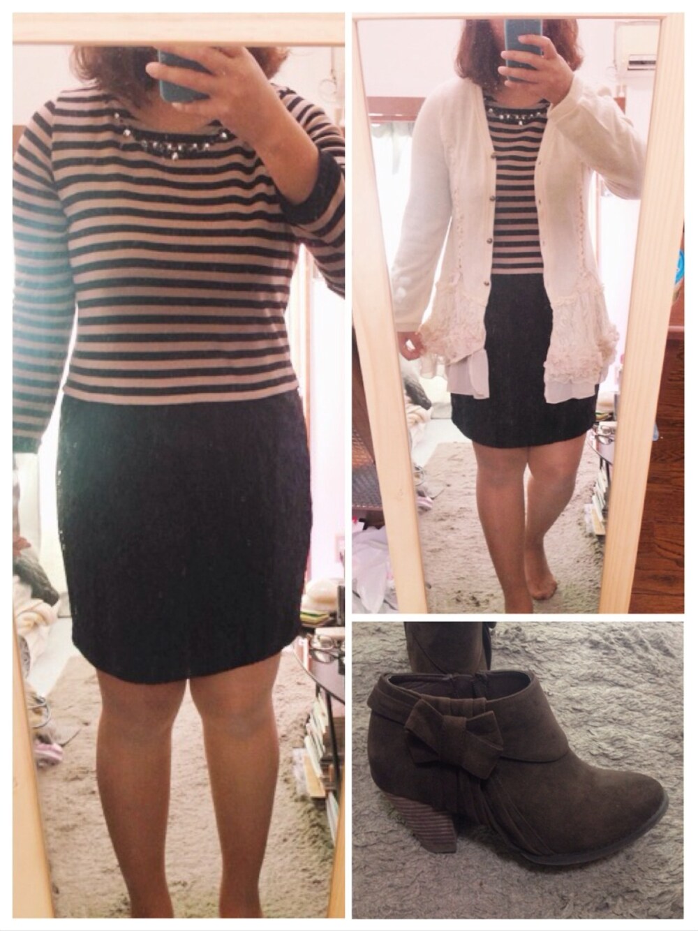 お薬もらいに病院へ。 ビジューつきワンピで 気持ちだけでもレディーに。 夜は最近肌寒いから axesのカーデが手放せない。 このカーデ1枚でガーリーになるからほんとに便利*+. 足元がワンパターンでちょっと残念。 でもショートブーツはまだ早いよね? 寒い季節はいろんなファッションアレンジしやすくてすき♡