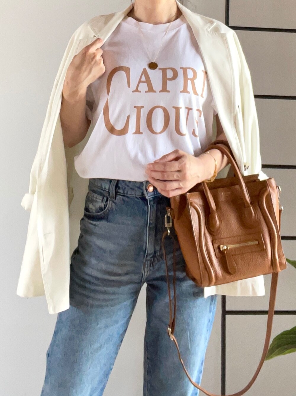 おはようございます😊 私の中の定番コーデ! リネンジャケット×Tシャツ×デニム❤️ またもやお気に入りのロゴTシャツで😊