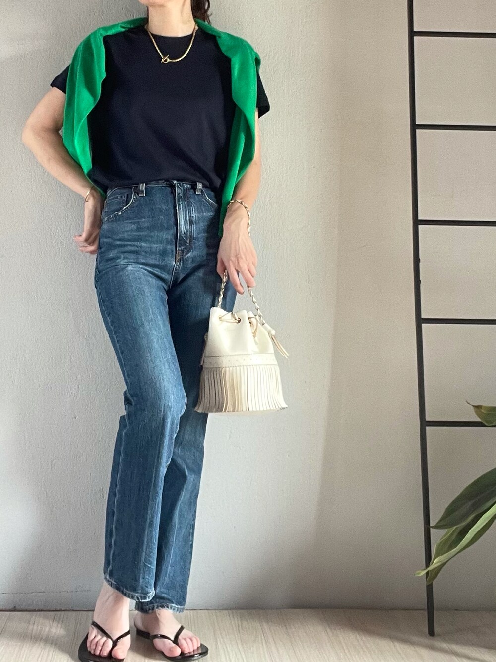 こんにちは😊 プチプラベーシックアイテムコーデ♪ Tシャツは、黒に見えるけどネイビーです。 Sサイズでも、程よいゆとりがあって私にはピッタリでした♪ デニムは数年前のGU♪ また再販して欲しいくらい気に入ってます🥰 ネイビーとグリーンの組み合わせが好き💚