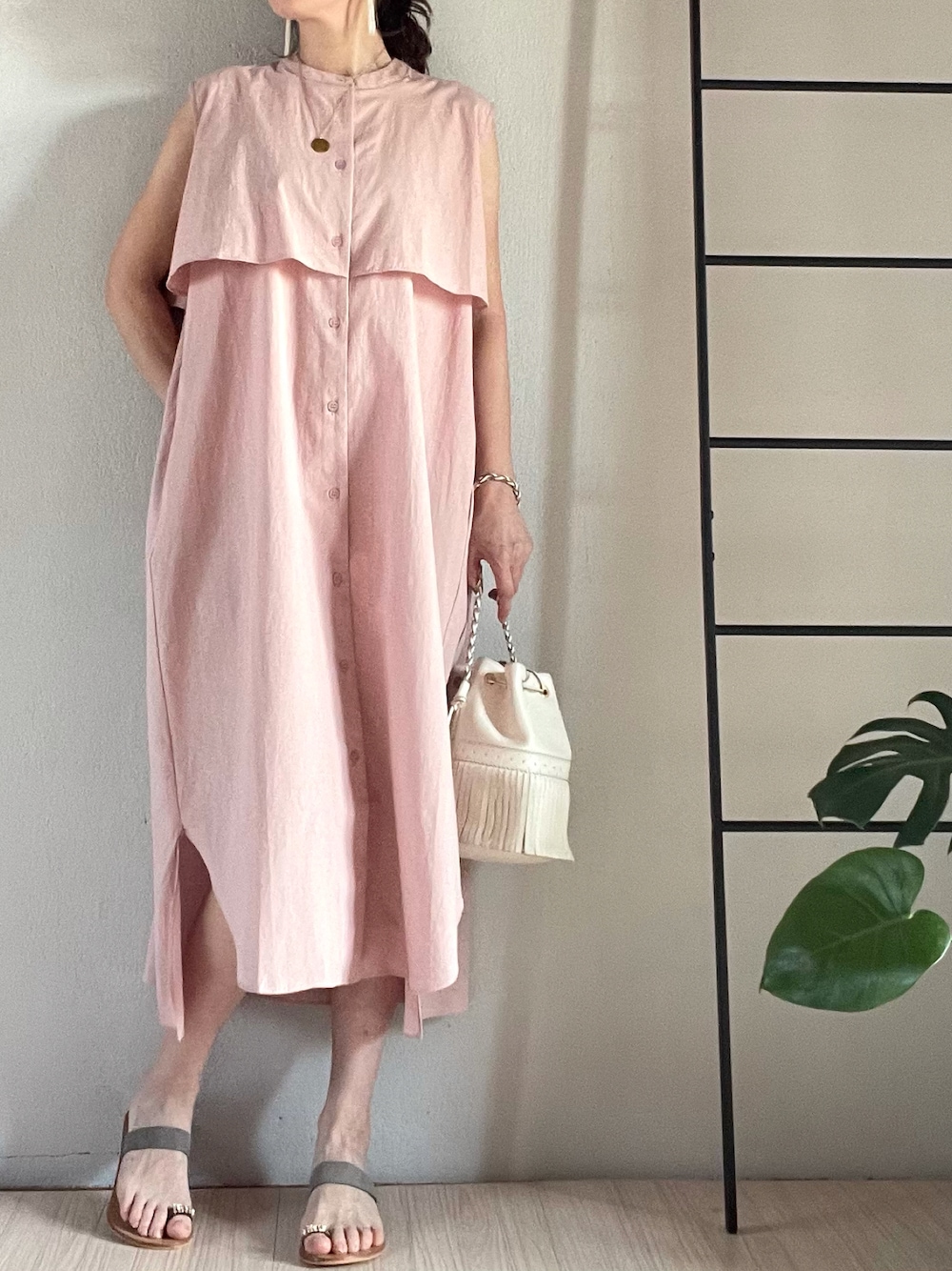 おはようございます😊 コーデ要らず🙌 bonjoursaganの淡ピンクワンピコーデ💕 バッグスタイルもとっても可愛いんです❣️