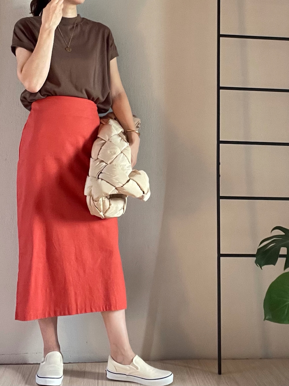 おはようございます☀ ちょっぴ秋カラーコーデ♫ プチプラのTシャツとスカートは、着回しも色々出来て買って良かったです❤︎︎⸜❤︎⸝