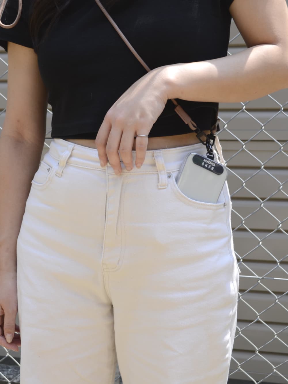 mfactory(企画販売部)のスマホグッズ「ナノユニバース [ショルダーストラップ] スマホストラップ 肩掛け 首かけ ロングストラップ」を使ったコーディネート