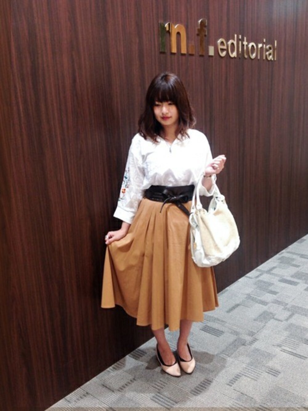 刺繍ブラウス×サッシュベルト×ふんわりスカートでトレンド盛りだくさん☆ 今回のコーディネートは、 巷で大人気の刺繍ブラウスにミモレ丈のふんわりスカートを合わせて、 サッシュベルトを一巻きすれば今年感満載です☆☆