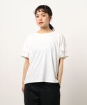 m.f.editorial スタッフのTシャツ/カットソー「エムエフエディトリアルレディース/m.f.editorial:Women ストレッチシフォン 半袖ドルマンプルオーバーTシャツ」を使ったコーディネート