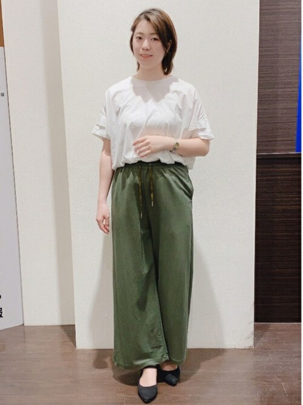 白のカットソーは袖口が広く、ポンチョに近い形になっています。 生地は薄めですが、これ一枚で着て頂ける商品になっています。 これからの夏には凄く活躍しそうです! パンツの方はウエスト部分がゴムになっていて、すごく履きやすいです。 153cmの私が履いても、丈はちょうど良かったです!