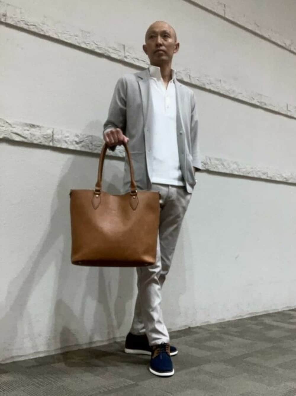 m.f.editorial スタッフのチノパンツ「m.f.エディトリアル メンズ 接触冷感ストレッチ トラウザーパンツ ドビー」を使ったコーディネート
