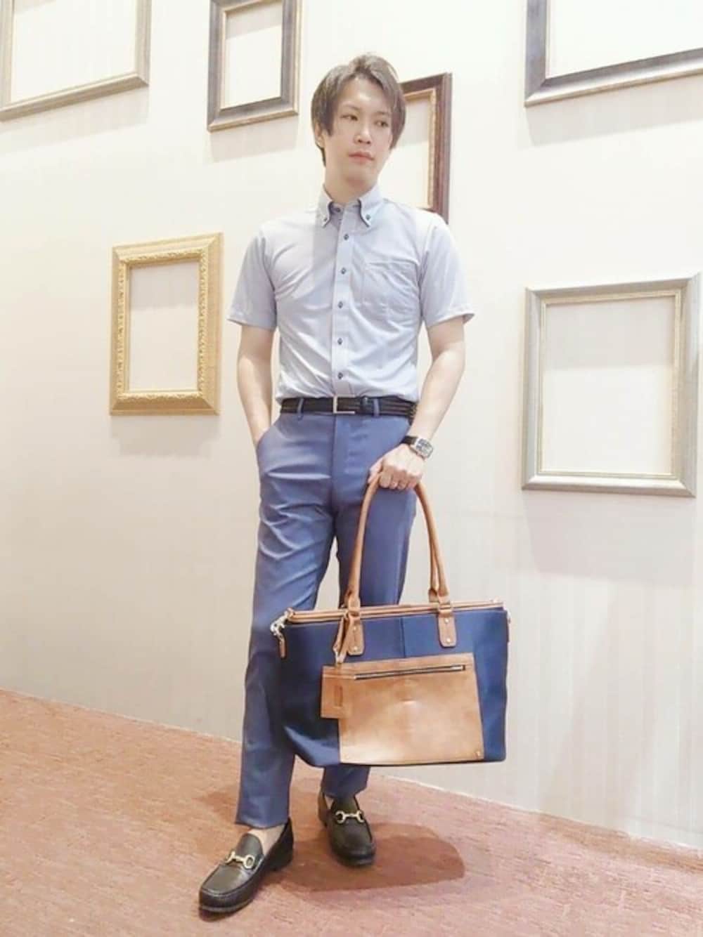 ネイビーグラデーションコーデ ブルー系の爽やかなカラーを意識したコーディネイトになります。 ☆使用アイテム☆ ★ノーアイロンストレッチ スタンダードフィット ボタンダウン半袖ニットシャツ ★スーパーストレッチ スリムフィット ノータックスラックス ヘリンボン青 ★コンビ配色 2WAYトートバッグ A4対応 ★ストレッチ メッシュベルト いよいよクールビズも本格的に始まりましたのでオススメのコーデです!ぜひお試しください!