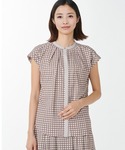 m.f.editorial スタッフのシャツ/ブラウス「m.f.エディトリアル レディース 配色バンドカラー 半袖比翼ブラウス」を使ったコーディネート