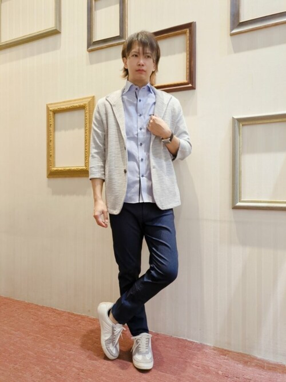 カットジャケットを使ったきれいめコーディネイトになります。 手軽にモードカジュアルが楽しめるのでオススメです。 ぜひお試しください!