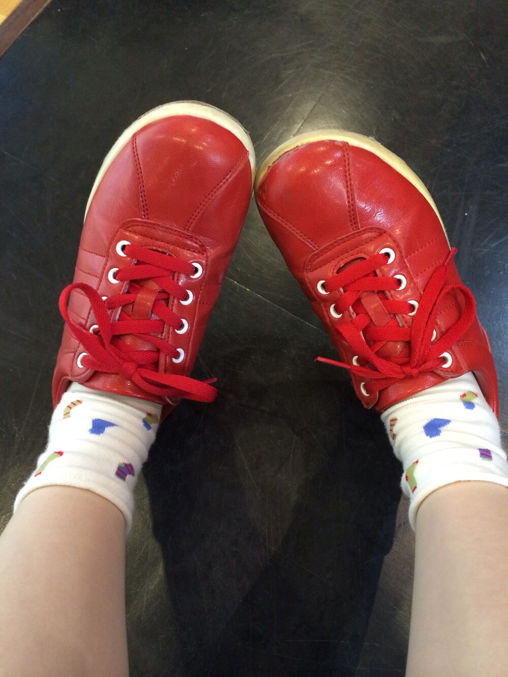 ボーリングの真っ赤なシューズに 靴下屋の靴下柄の靴下を(^O^)♡