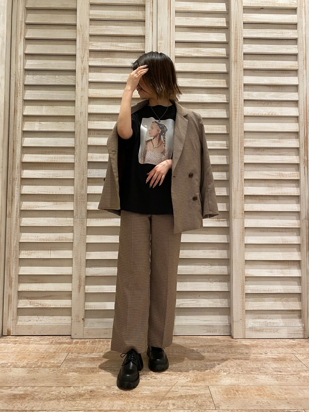秋トレンドのチェック柄セットアップを使用したコーディネートです! カラーが落ち着いたトーンなので、チェック柄でも派手な印象にならず着用する事が出来ます✨ Tシャツ合わせでカジュアルスタイルにもなれば、ブラウス合わせでフォーマルスタイルにもなります! ジャケットはデニムパンツと合わせるとまた一味違ったスタイリングになり、コーディネートの幅が広がります☺️