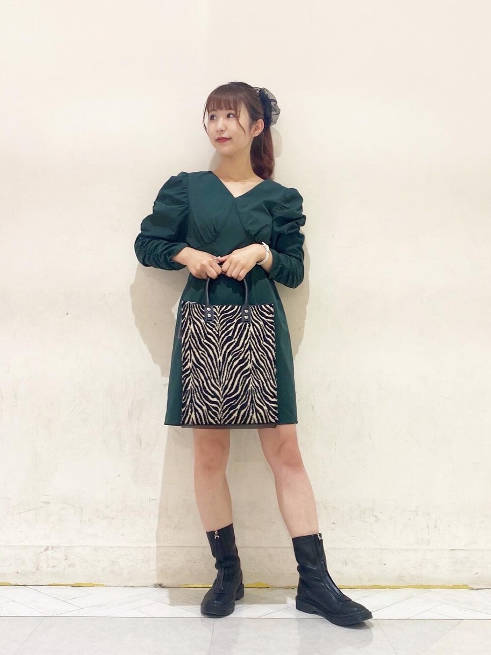 トレンド感あふれるワンピース! ウエストがシェイプされてますので凄くシルエットが綺麗に見えます! また、バッグで合わせたアニマル柄は秋冬に必見です♡