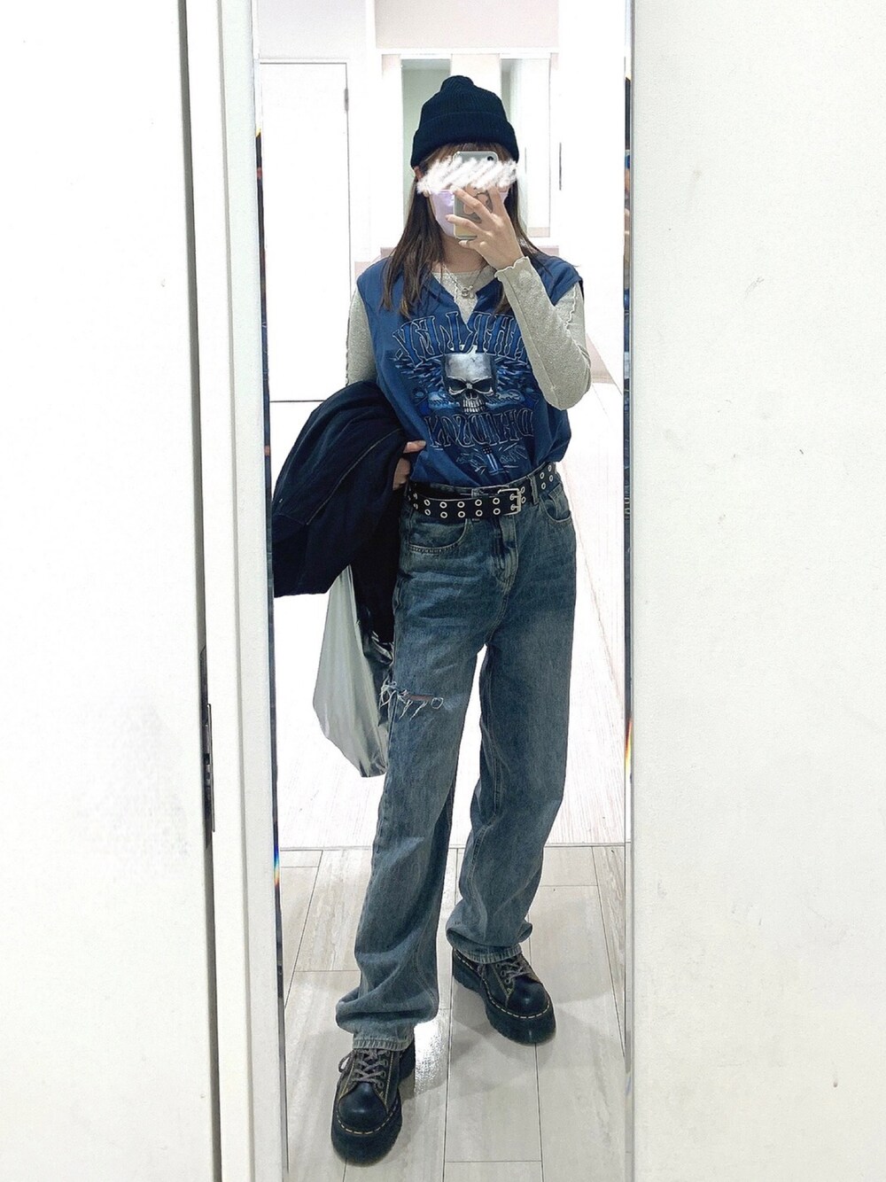 vintageのノースリハーレー💙✌🏻 サイドスリットのデニムもきゃわちでしょ アウターいらん時期はやくこ〜い🫧🍃