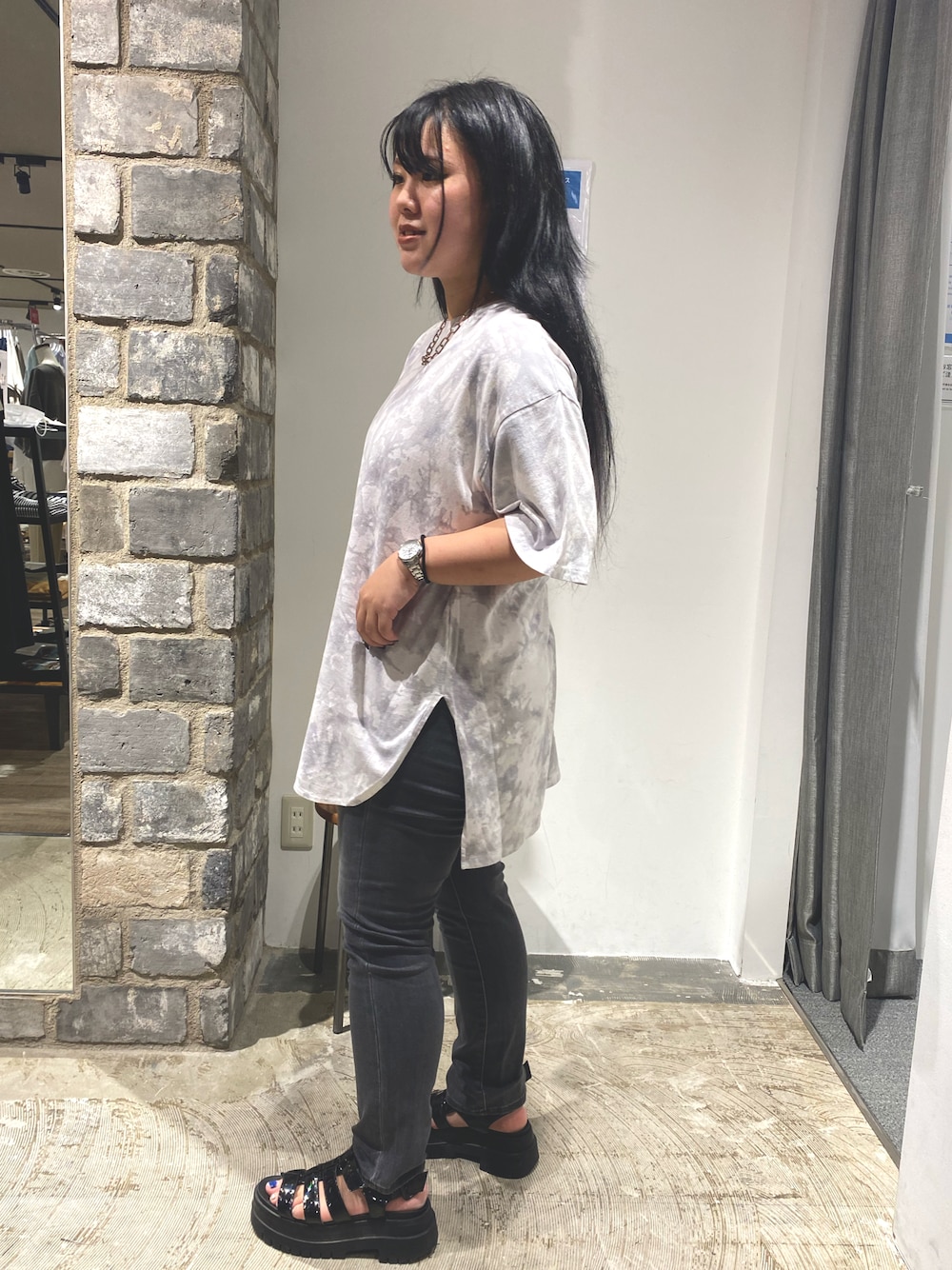 いおりのTシャツ/カットソー「タイダイ染め裾ラウンド5分袖カットチュニック」を使ったコーディネート