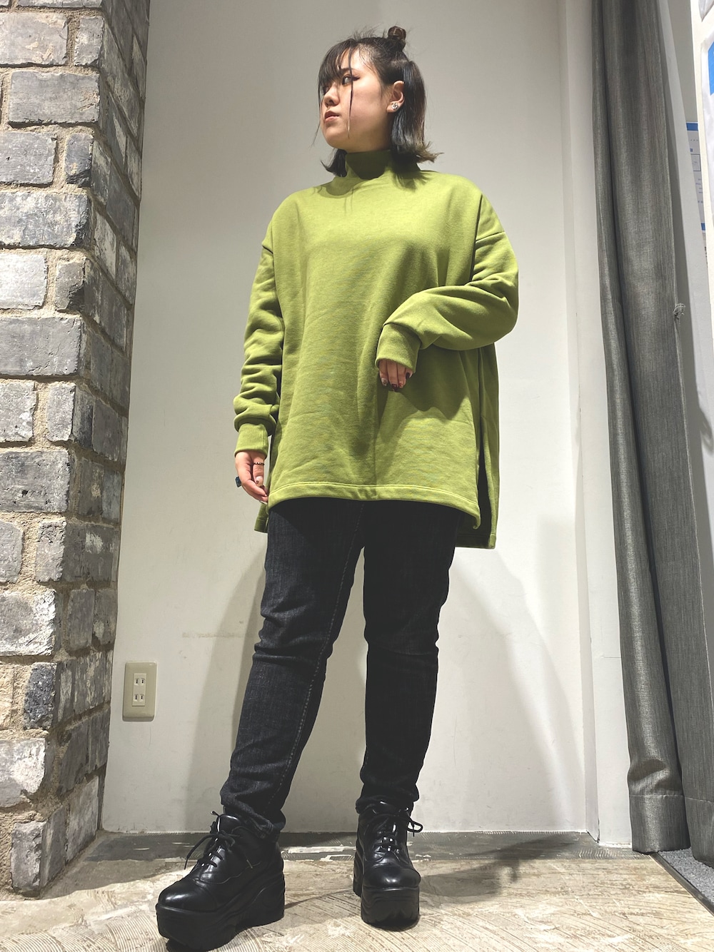 グリーンとブラックの2色コーデ💚🖤 後ろの裾が少し長めなのがポイント