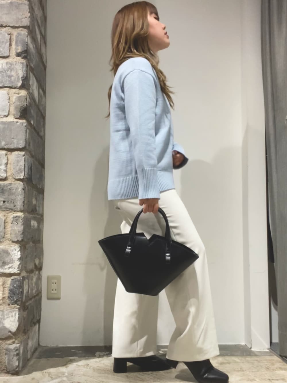ブルーとホワイトの冬コーデ❄️ 寒くてもオシャレを楽しみたい!!!! ワンポイントに黒のアイテム入れて スッキリさをプラス!!