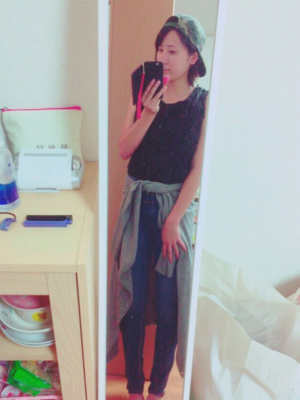 タンクトップは涼しいけど クーラーの部屋やと寒い 温度調節にロングカーディガン✌🏻️✨