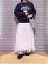 ▷スウェット タイトすぎずオーバーすぎずの程よいサイズ感のスウェット! カラーによってデザインが変わります! インナーにタートルを合わせると冬場まで長く着れます◎ ▷スカート リバーシブルで着回し抜群スカート! 表はチュール素材、裏はマットなサテン素材を使用しております♩ (私はチュールを表にして履いてます!) 一枚持っておくだけで幅広いコーデが楽しめます✨