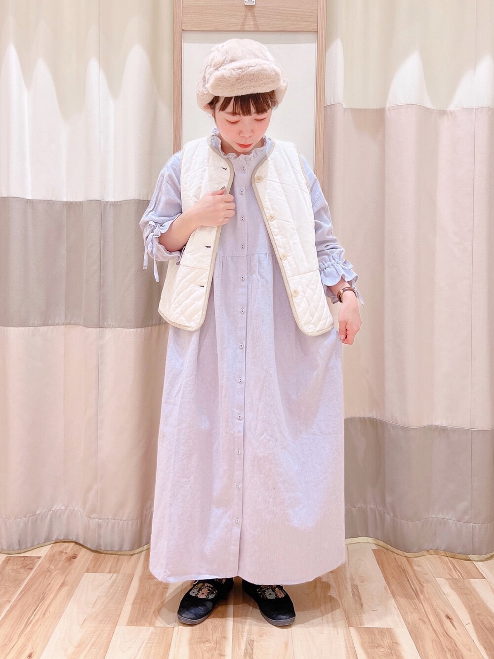 おはようございます🌞 🌟イオンモールクリアランス開催🌟 1/1〜全品半額から2点で更に10%off! 冬物再値下げ行っております! ・・・・・・・・・・・・・・・・・・・・・・・・・・・・・・・・・・・・・・・・・・ 袖がフリルのワンピースは、袖のリボン🎀が とってもキュート👍 ウエストからの切り替えのシルエットも体型カバー にもなります◎ 合わせた中綿キルトベストで、少しカジュアルダウン してナチュラルに🌱 ・・・・・・・・・・・・・・・・・・・・・・・・・・・・・・・・・・・・・・・・・・ 🚨イオンモール筑紫野の営業時間 10:00〜21:00