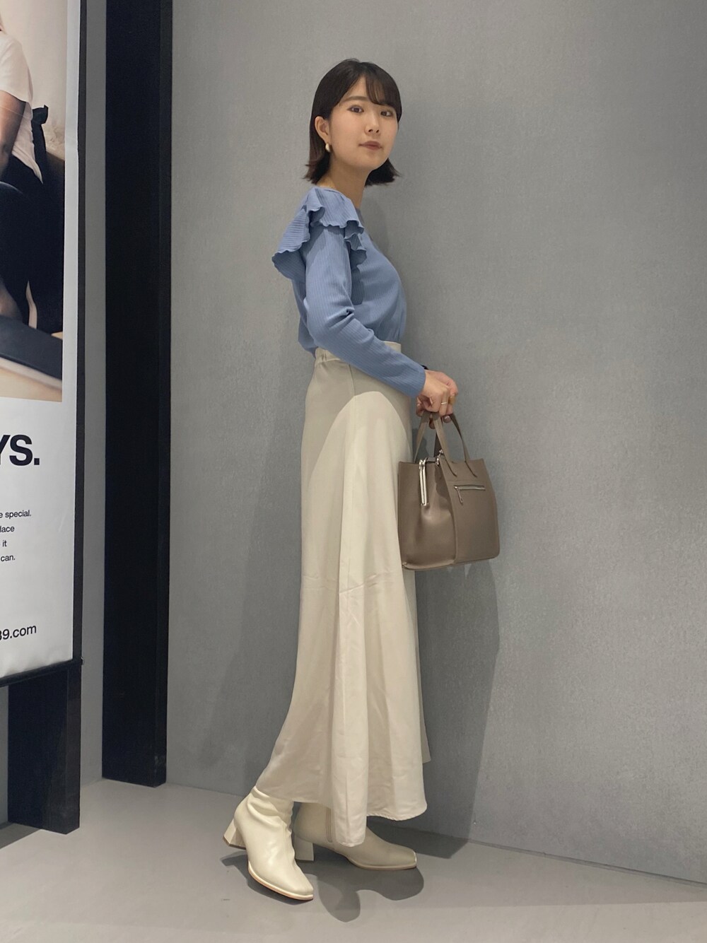 こんにちは! ご覧いただきありがとうございます🍃 肩フリルトップスとスカートを合わせて 上品な綺麗めコーデにしてみました◎ Instagram【@____9.mn】