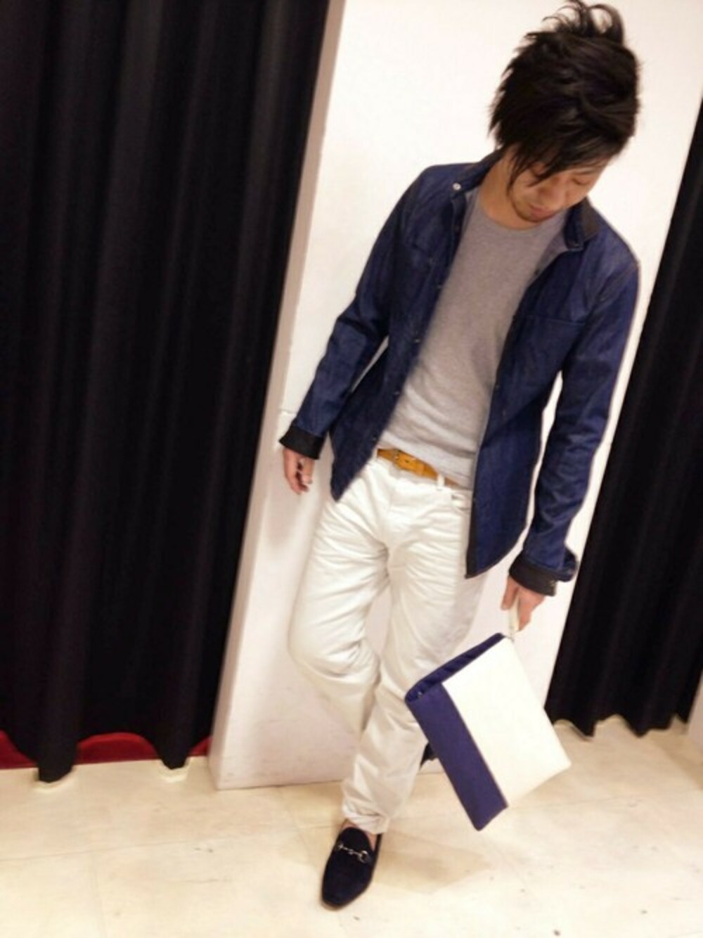 タツのシャツ/ブラウス「レザーデニムシャツ」を使ったコーディネート