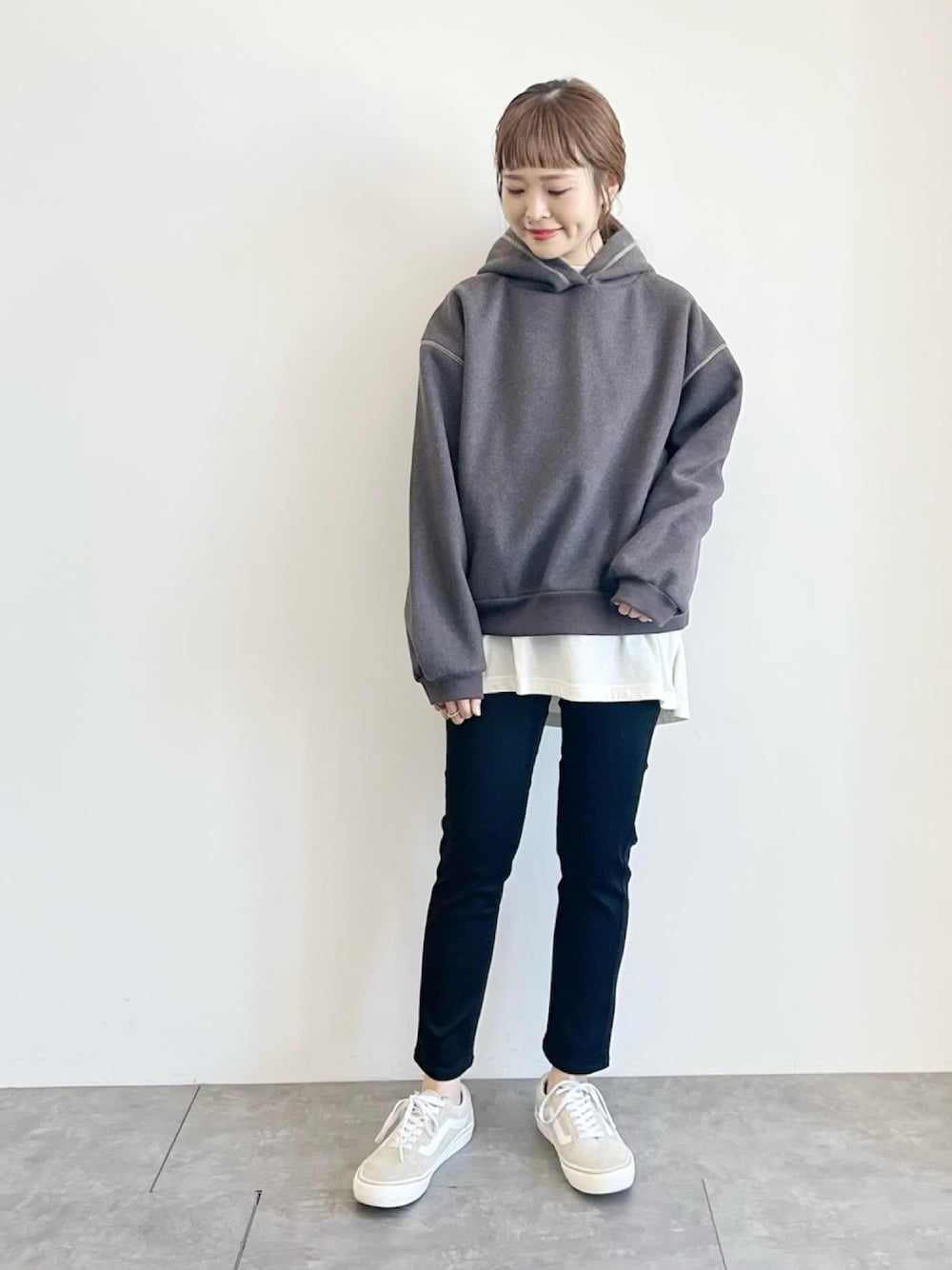 シンプルなフーディートップスもロンTをレイヤードすればこなれ感が出ます◎