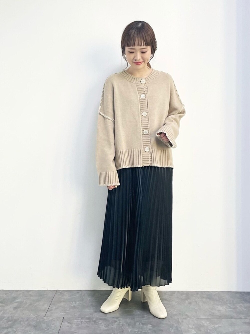 ぐちょめのカーディガン/ボレロ「【WEB限定】ハンドステッチ風ニットカーディガン *」を使ったコーディネート