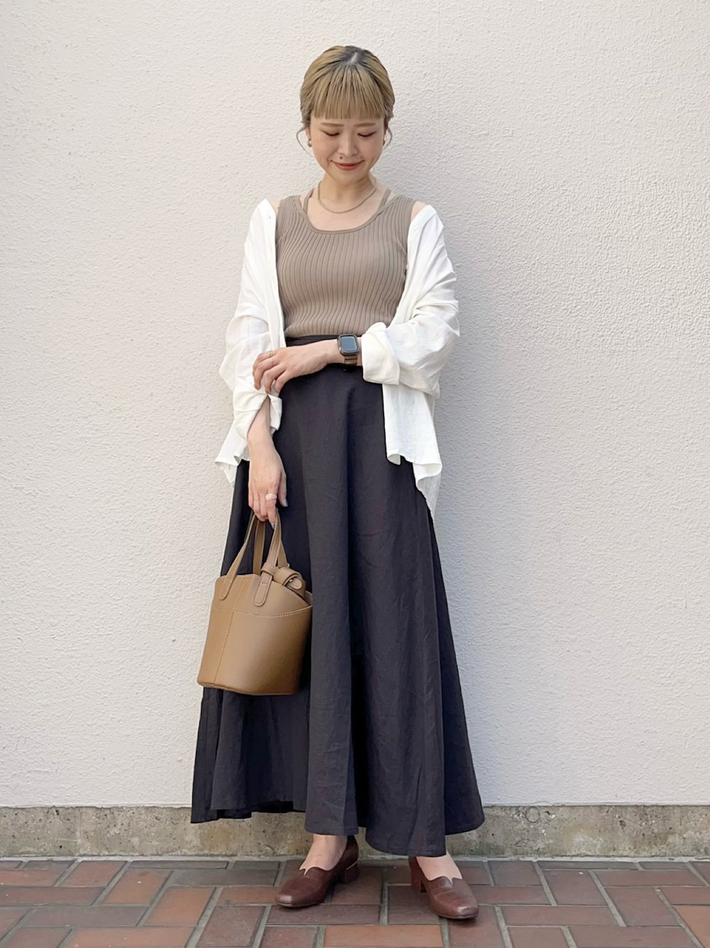 ブラウスもスカートも、麻混素材なので夏でも涼しく着れます◎
