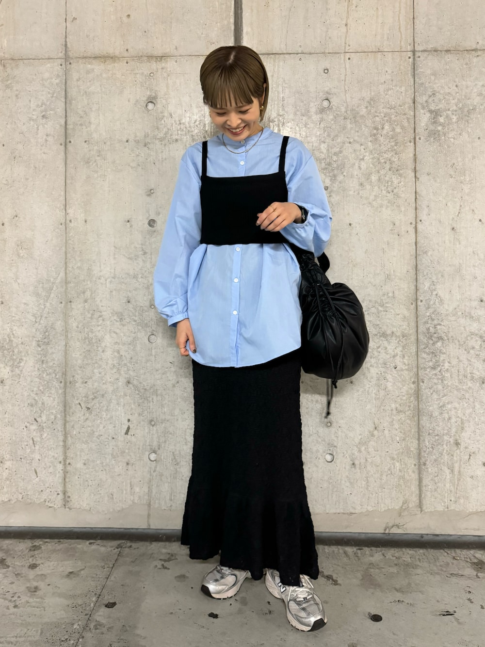 ぐちょめのチュニック「SET2点ニットビスチェ+ノーカラーシャツ」を使ったコーディネート