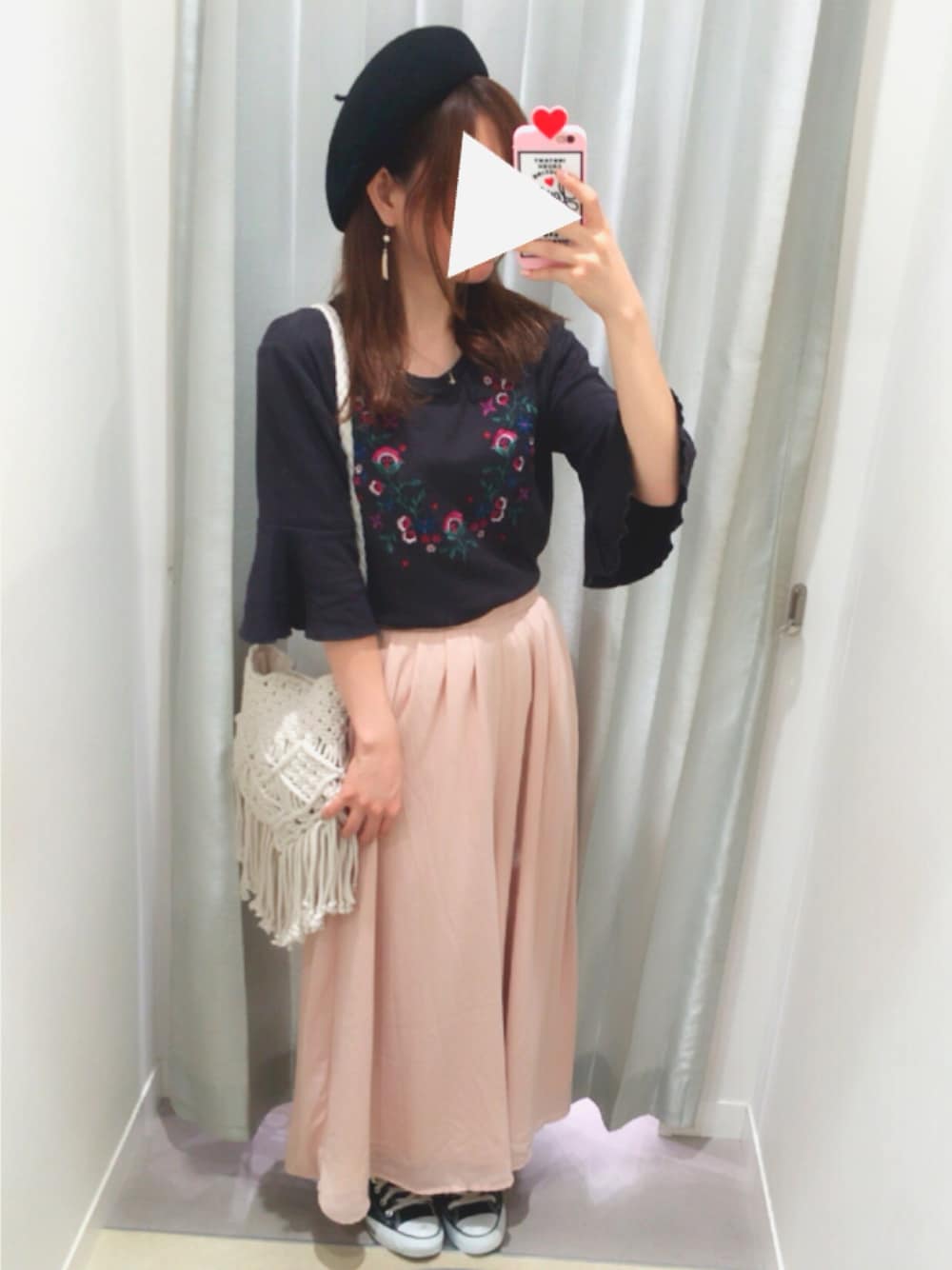 刺繍とひらひらした袖が可愛いトップスを使ったコーデです🙆❣❣ 真っ黒ではない色なので重たくなりすぎず使いやすい◡̈♡ ピンクのワイドパンツもシフォン素材で 女の子らしいコーデにしてみました😎👍💕← 最近しょっちゅうベレー帽🍀🍀 見てくださってありがとうございます(*˙︶˙*)☆*°