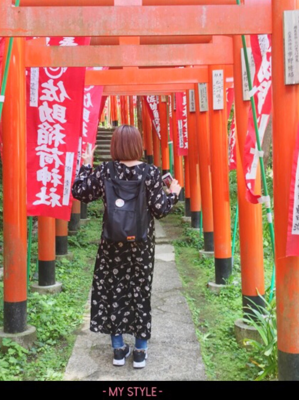 鎌倉の佐助稲荷神社⛩へ。たくさん歩いた!やっぱりポンプは最強だ! ドラえもんいつでもいっしょ2wayバッグ。 愛犬のカンカンバッヂをつけて。