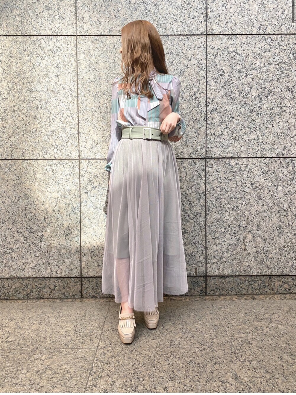 ブラウス✖︎チュールスカート キレイめコーデ♡ ブラウスはレディアゼルのオリジナル柄です‼︎ チュールスカートは足首の透け感がありスッキリとした印象になります(^^)