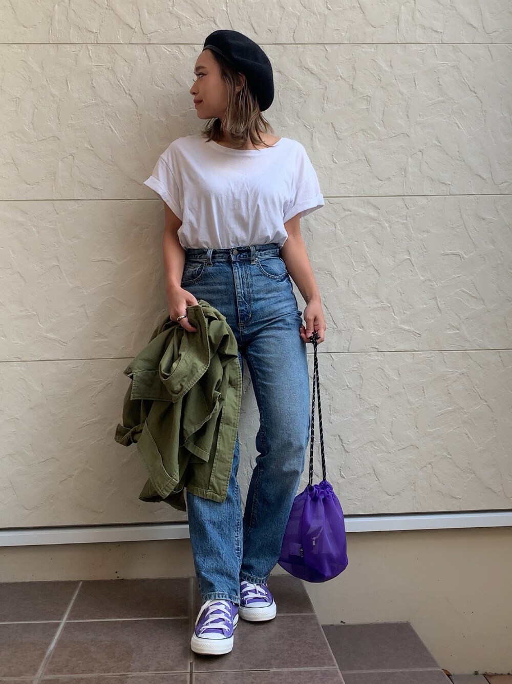 megumiのスニーカー「CONVERSE コンバース オールスター ウォッシュドキャンバス オックス / ALL STAR WASHEDCANVAS OX (PURPLE) 31300160」を使ったコーディネート