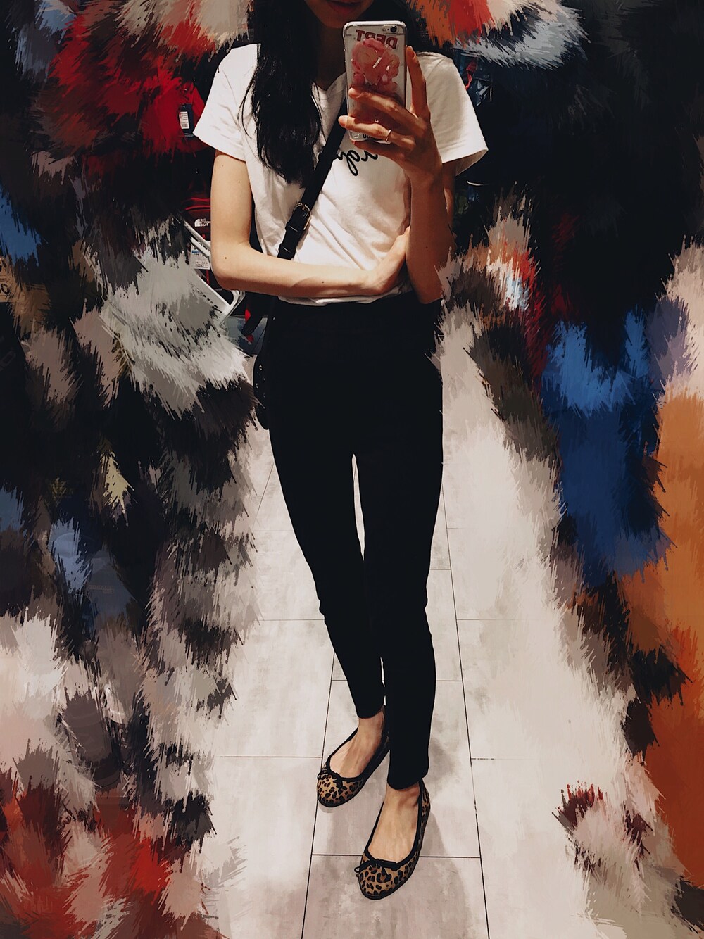 ワントーンコーデをして見ました! やせっぽちなので、ピチッとしたのはくと 脚のラインが目立ちますね、、😳💦 バレエシューズをレオパードにするだけで ギャル度が上がった気がする🐅笑