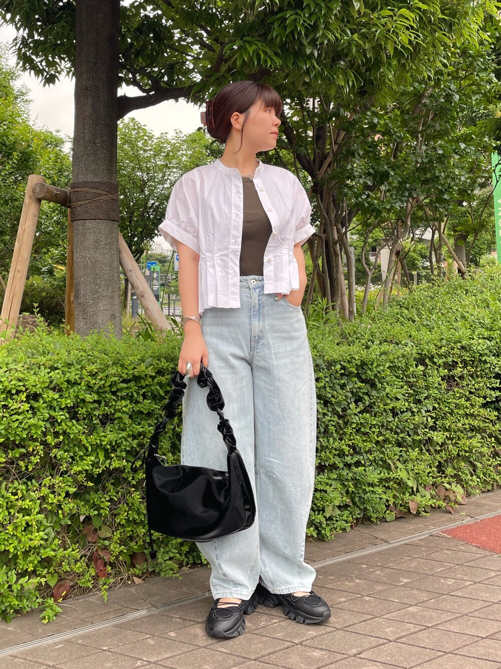 TSUNODAのシャツ/ブラウス「クロップドハーフスリーブブラウス」を使ったコーディネート