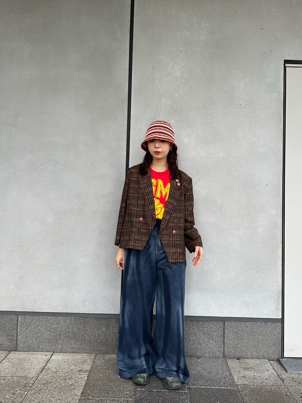 mogi(OVERRIDE東京ソラマチ)のハット「OVERRIDE REC KNIT SCALLOP CLOCHE SG / オーバーライド」を使ったコーディネート